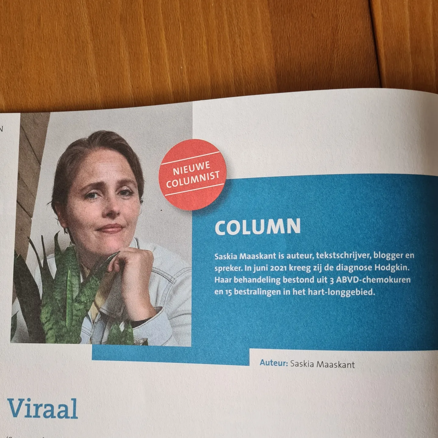 Sinds september 2022 ben ik een jaar lang columnist in het vakblad Oncologica (tijdschrift voor oncologieverpleegkundigen en verpleegkundig specialisten oncologie). Daarvoor ben ik gevraagd nadat mijn blog Soms verlang ik terug naar mijn chemokuren compleet ontplofte op LinkedIn. Het stuk werd meer dan 230.000 keer gezien, kreeg ruim 1.500 emoji-reacties, 360 commentaren en werd meer dan twintig keer gedeeld. Ik kreeg gratis massages, boeken en zelfhulpboxen aangeboden. Het overweldigde me wat met het hart op je tong schrijven kan veroorzaken.